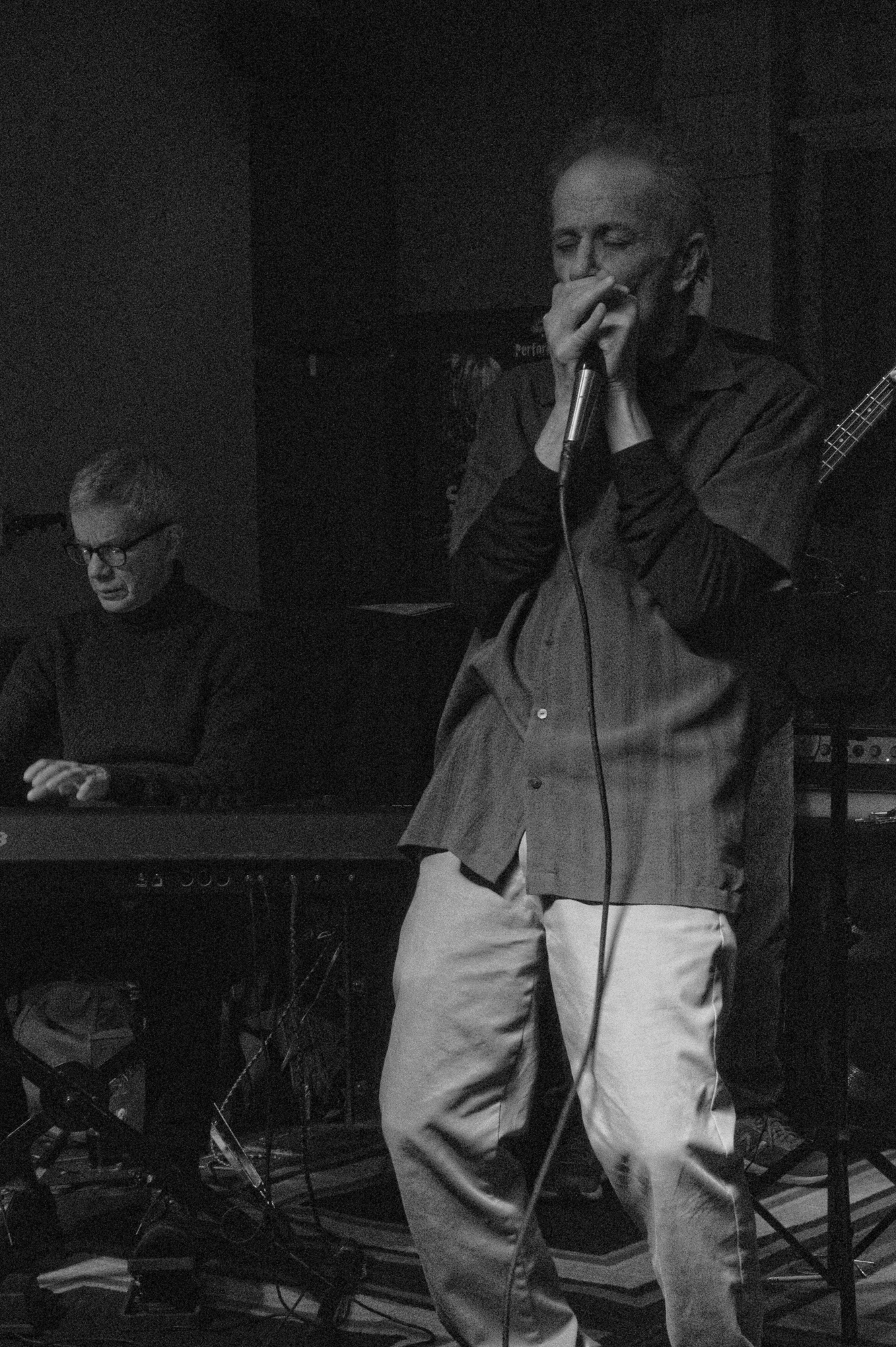 The Felix Cabrera Band playing at Lucy's on Sunday, January 19, 2020 with Felix Cabrera (blues harp, vocals), Mike Leslie (bass), Tim Regusis (Keyboards), Stu Cutler (guitar) and Bill Schroeder (drums).